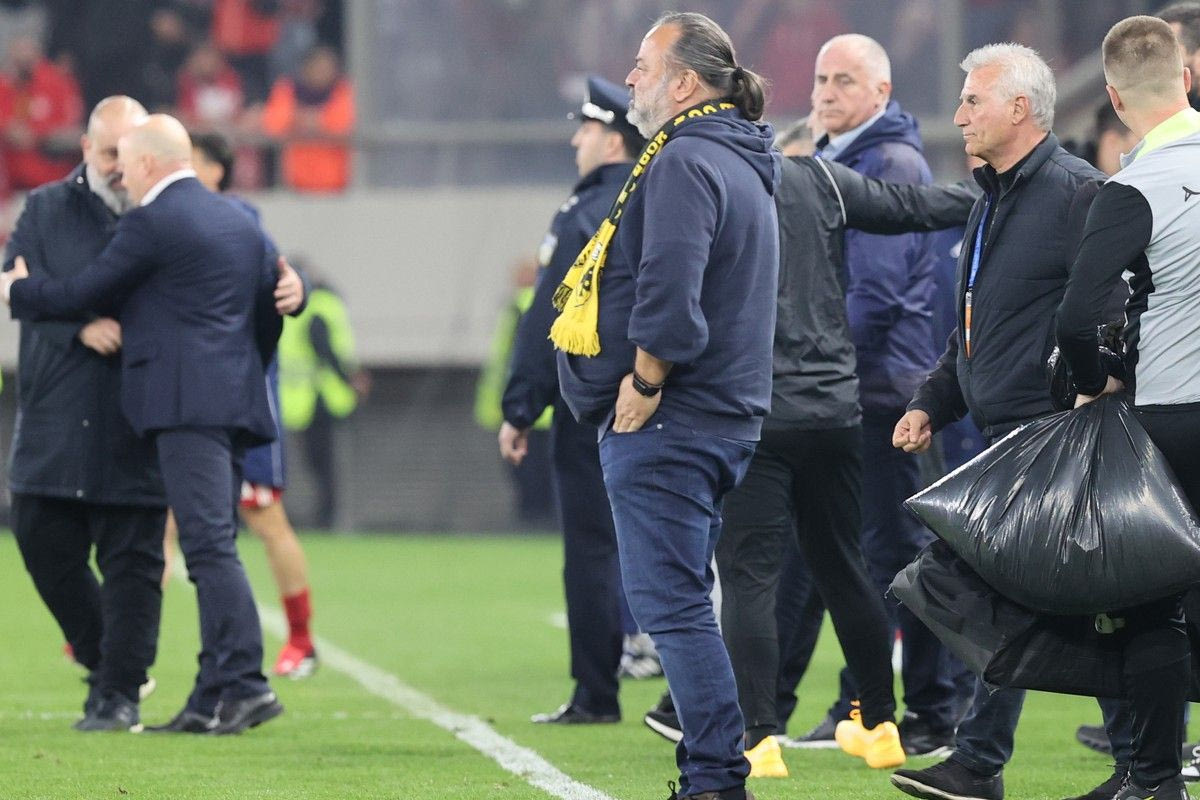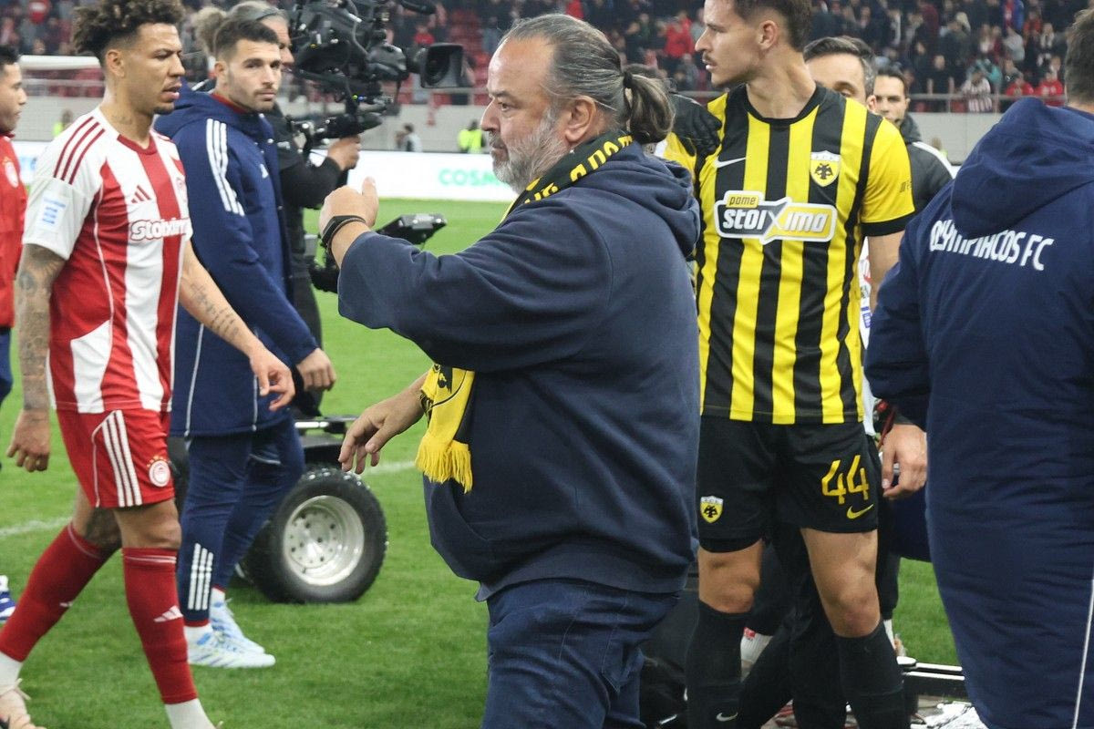 Μετά τη λήξη του αγώνα Ολυμπιακός – ΑΕΚ, ο Μάριος Ηλιόπουλος μπήκε στον αγωνιστικό χώρο του Καραϊσκάκης για να χαρεί τη νίκη και κυρίως να συγχαρεί τον Μάρκο Νίκολιτς και τους παίκτες του.