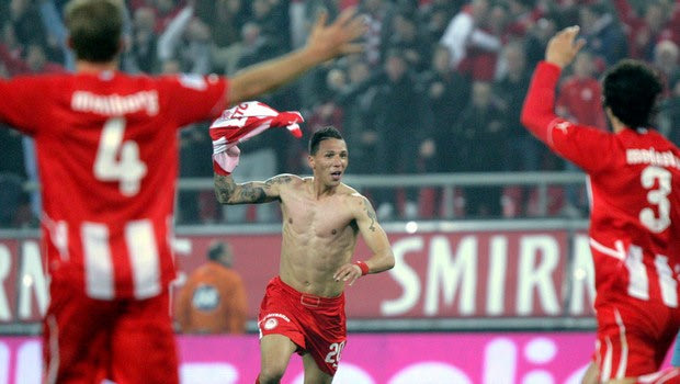 O Χοσέ Χολέμπας πανηγυρίζει το γκολ του στην αναμέτρηση Ολυμπιακός - ΑΕΚ 6-0