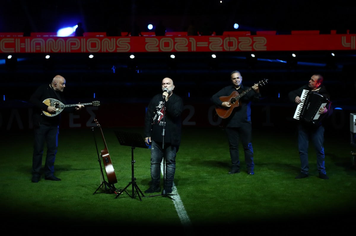 Μέρος της φιέστας για την κατάκτηση του πρωταθλήματος του Ολυμπιακού αφιερώθηκε στον Μίκη Θεοδωράκη, με τον Μπάμπη Στόκα να ερμηνεύει έργα του.