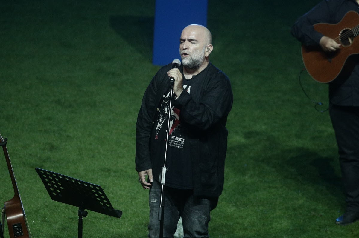 Στα μάτριξ του Καραϊσκάκης προβλήθηκε video για τον Θεοδωράκη, ενώ στην συνέχεια ο Μπάμπης Στόκας ερμήνευσε συνθέσεις του κορυφαίου Έλληνα μουσικοσυνθέτη.