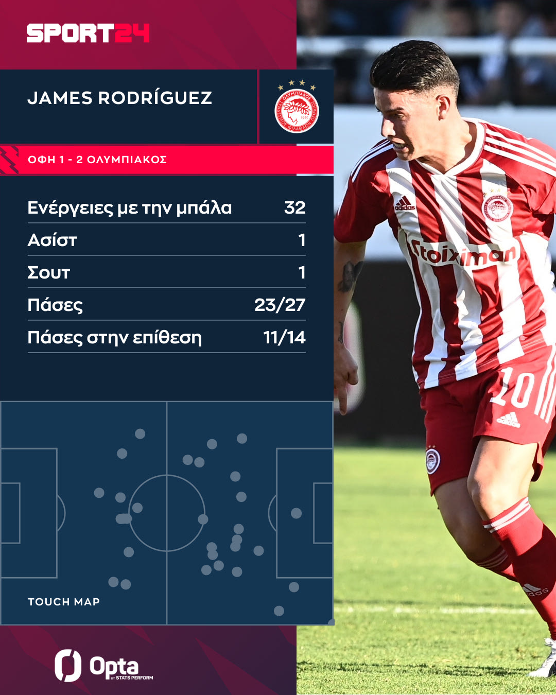 Η είσοδος του Χάμες Ροντρίγκες στον αγωνιστικό χώρο ήταν μία από τις αιτίες. Ο Κολομβιανός μεσοεπιθετικός με τις κινήσεις του στο γήπεδο πίσω από τον φορ και ανάμεσα στις γραμμές του ΟΦΗ βοήθησε τους Πειραιώτες να παίξουν ψηλότερα.