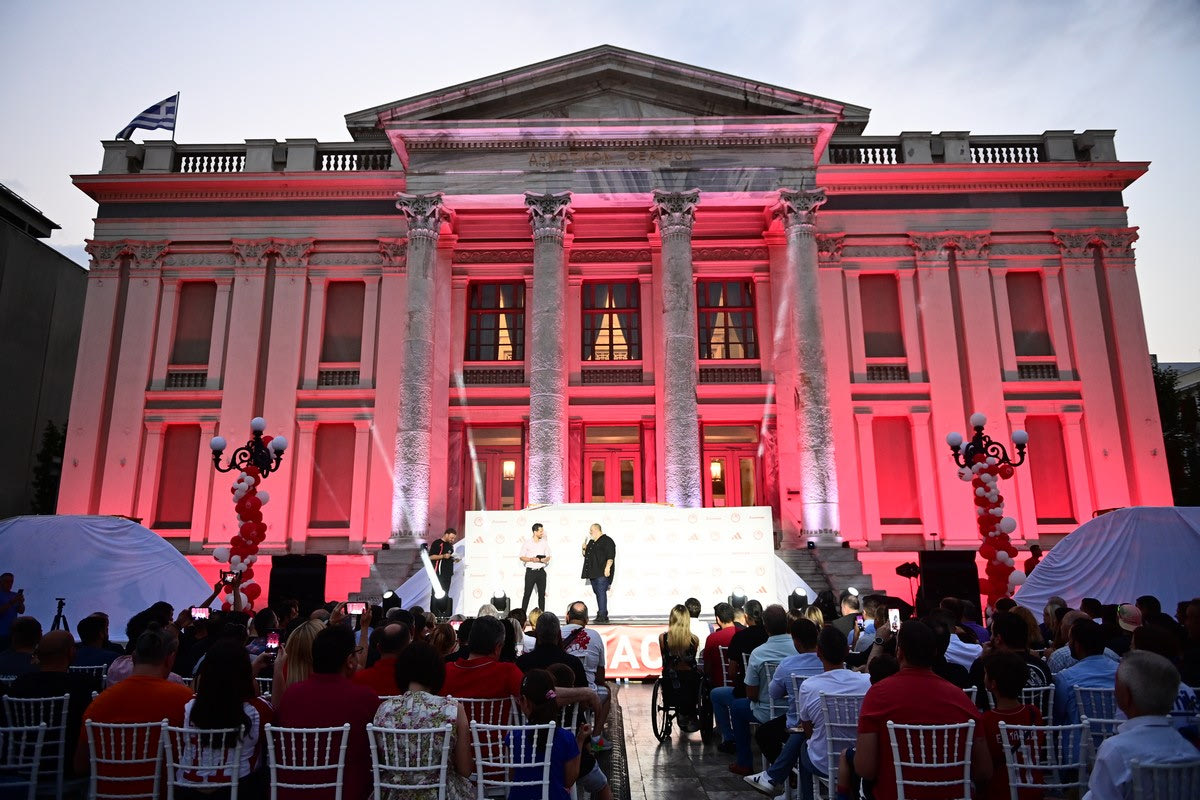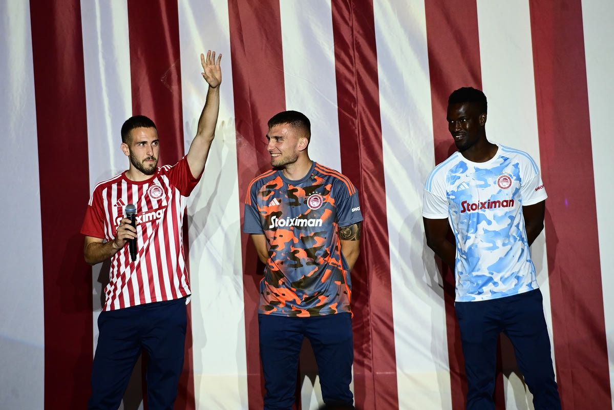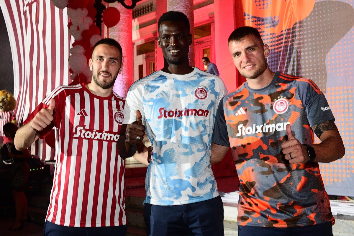 “Στον προαύλιο χώρο του Δημοτικού Θεάτρου Πειραιά, σε μια μαγική καλοκαιρινή βραδιά, η ΠΑΕ Ολυμπιακός παρουσίασε τις εμφανίσεις για την αγωνιστική περίοδο 2023-2024! Τις τρεις νέες εμφανίσεις της κορυφαίας ομάδας της χώρας, με τις οποίες θα ταξιδέψει στις επόμενες, μεγάλες θρυλικές στιγμές της.