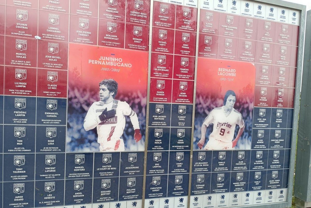 Όμορφη “πινελιά” έξω από την έδρα της Λιόν είναι οι φωτογραφίες μεγάλων ποδοσφαιριστών και ποδοσφαιριστριών της ομάδας. Από τον ενεργό Λακαζέτ, μέχρι τον Ουμτιτί, τον Τουλαλάν και τον Ζουνίνιο Μπερναμπουκάνο. Όλοι τους έχουν τη θέση τους στο “σπίτι” των γκον.