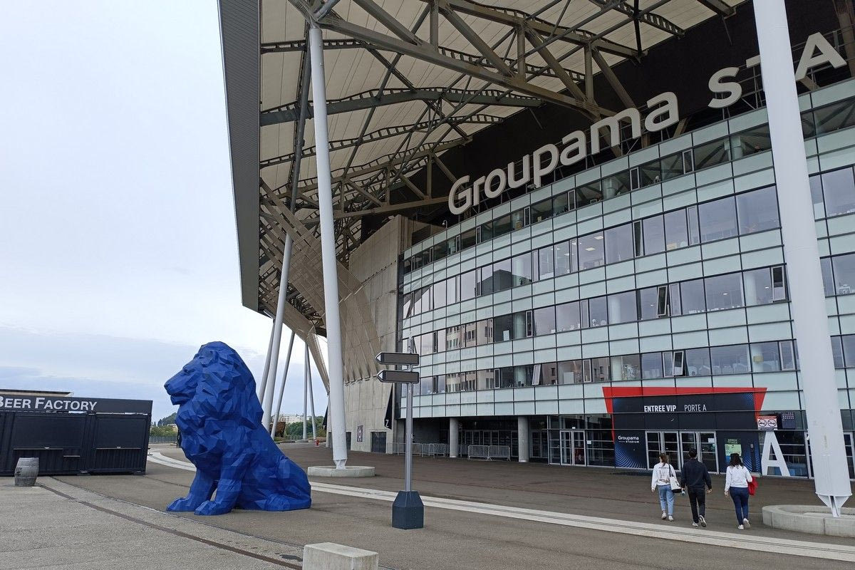 Καθώς πλησιάζει κανείς στο Groupama Stadium θα παρατηρήσει τα αγαλμάτινα λιοντάρια, το σύμβολο της ομάδας και της πόλης. Στέκονται επιβλητικά, στα χρώματα της Λιόν, στις πύλες.