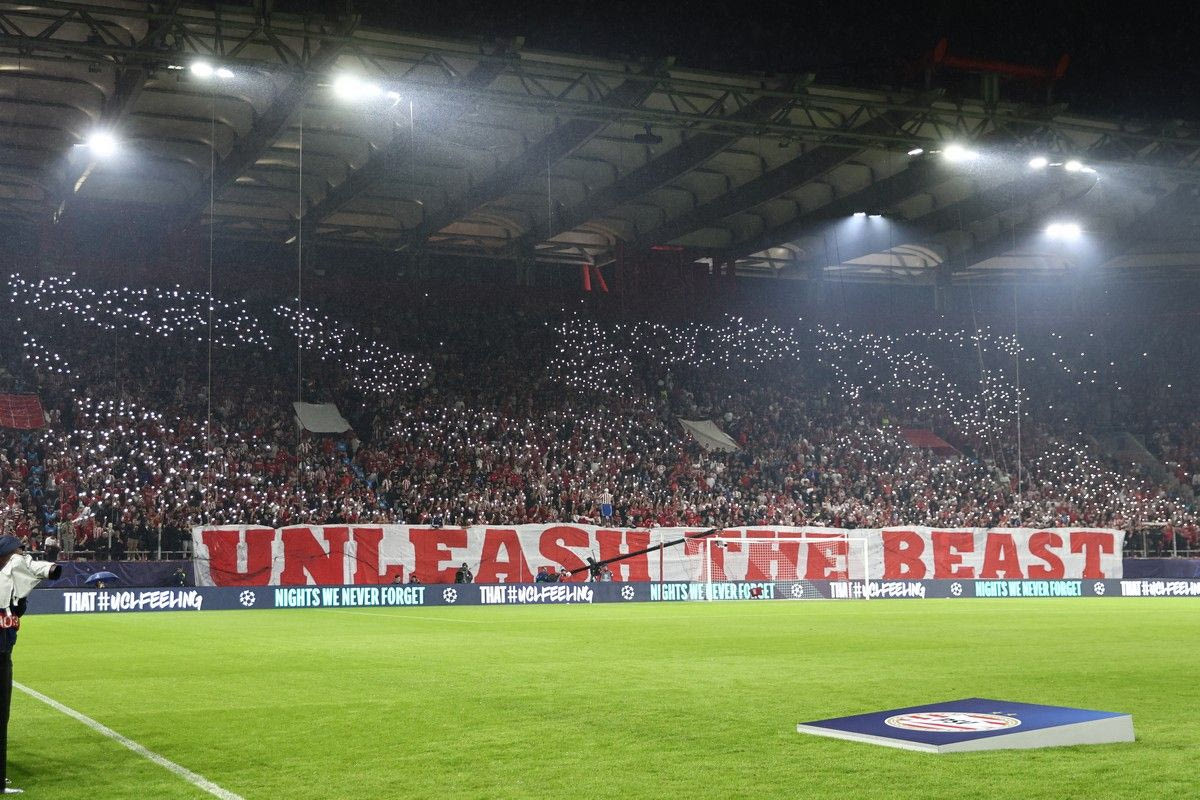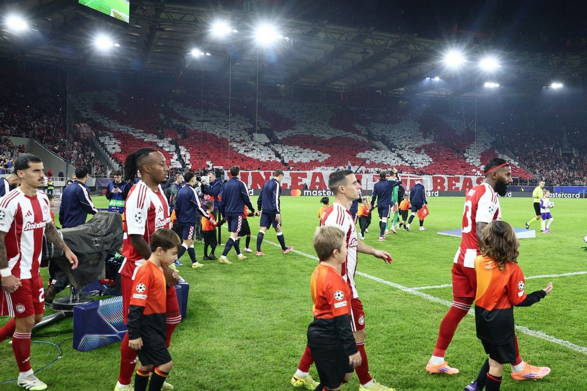 Οι φίλοι του Ολυμπιακού ετοίμασαν ένα εντυπωσιακό κορεό πριν τη σέντρα του κρίσιμου αγώνα με την Αϊντχόφεν για την 4η αγωνιστική της League Phase του Champions League.