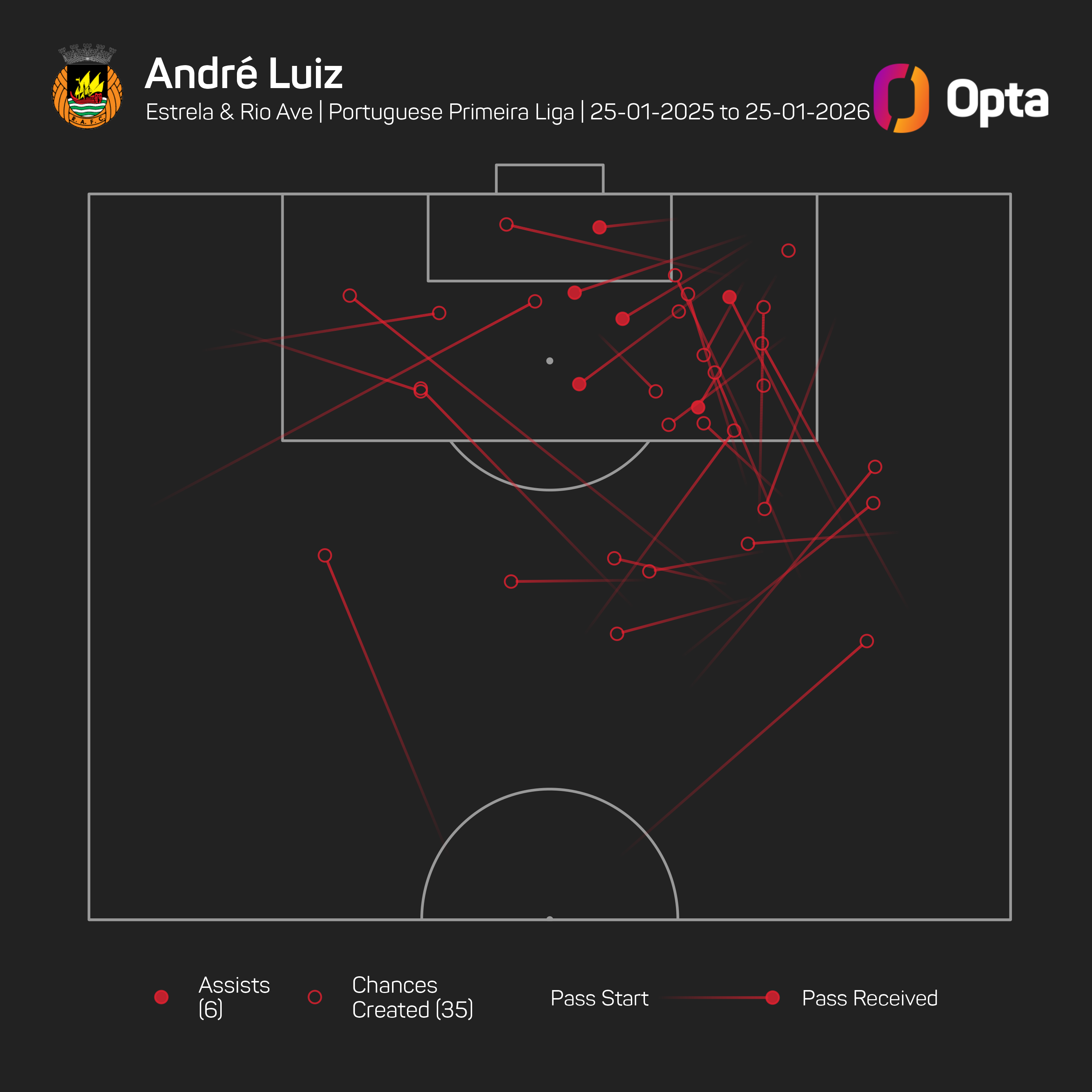 Στο γράφημα της Opta, μπορείτε να δείτε όλες τις ευκαιρίες που δημιούργησε για τους συμπαίκτες του από τις 25 Ιανουαρίου του 2025.
