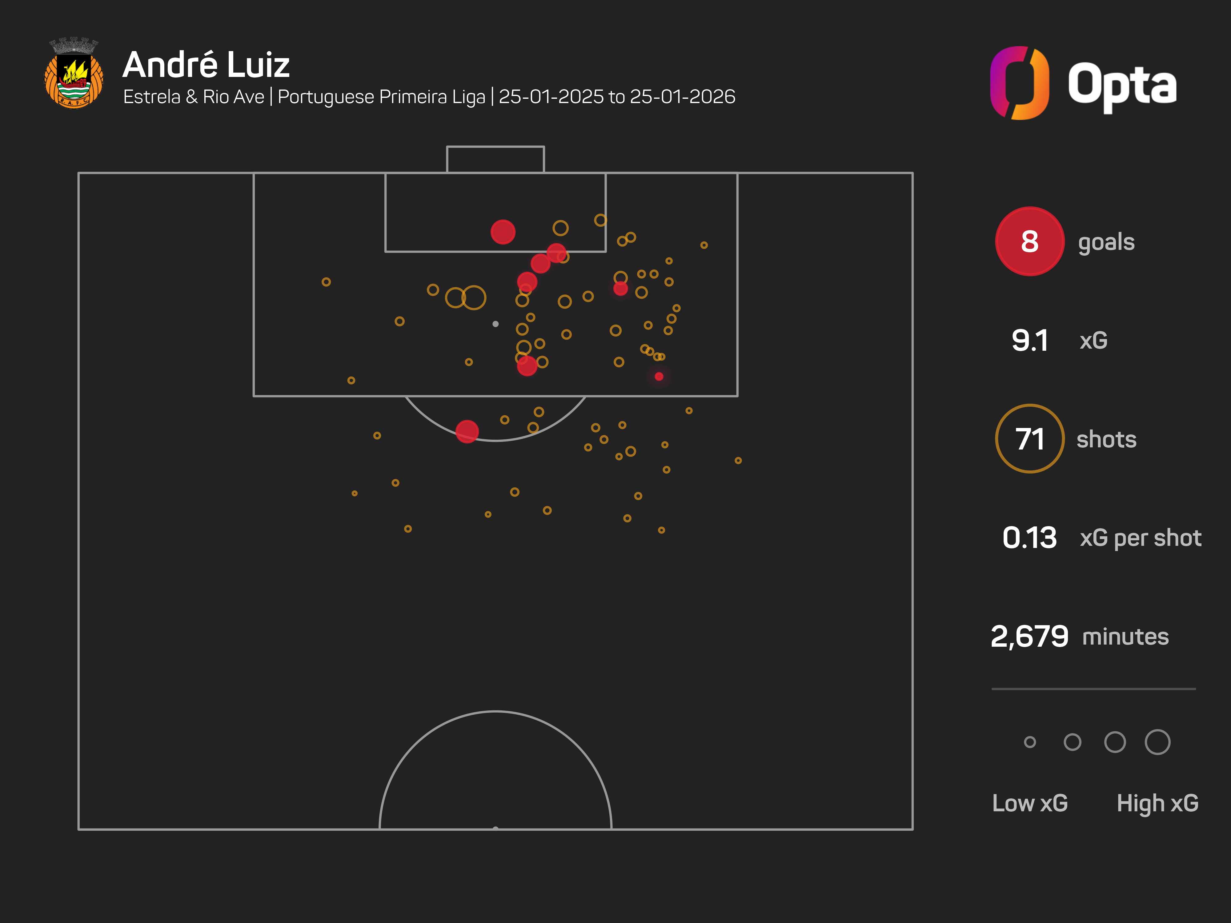 Ο Αντρέ Λουίζ τις τελευταίες 365 ημέρες έχει πετύχει συνολικά οκτώ γκολ, με τα επτά εξ αυτών να είναι τη σεζόν 25/26, κάτι που δείχνει ότι βρίσκεται σε φόρμα.