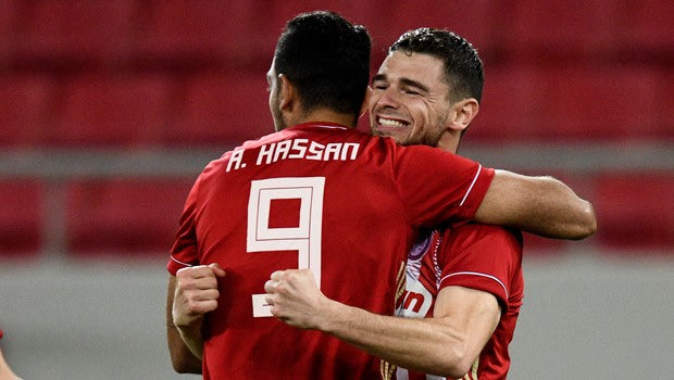 Κάιπερς και Χασάν πανηγυρίζουν μετά το 1-0 επί του Άρη στον προημιτελικό του Κυπέλλου
