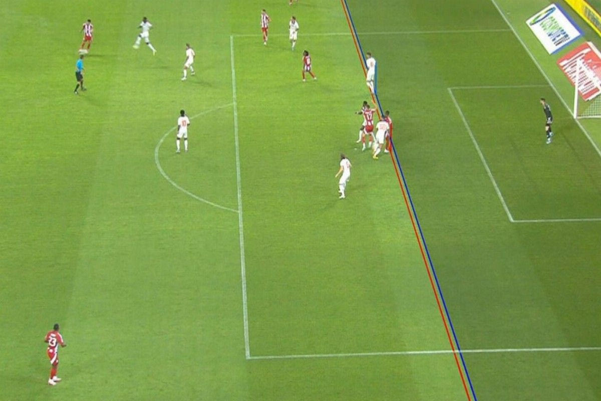 Ωστόσο, κατόπιν παρέμβασης του VAR, Πέτρου Τσαγκαράκη, το γκολ μέτρησε, καθώς σύμφωνα με τις γραμμές (μπλε ο αμυνόμενος, κόκκινη ο επιτειθέμενος) ο Ελ Κααμπί, που είχε συμμετοχή στη φάση, μετά την ασταθή απόκρουση του γκολκίπερ Μπαραγκάν, καλύπτονταν από τον αμυντικό της Athens Kallithea.