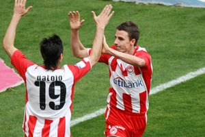 | Έστω και με 10, έστω και στην εκπνοή ο Ολυμπιακός κάνει το 2-0. Ο προωθημένος Μιχαηλίδης είχε εγκαταλείψει την εστία του και ο Μήτρογλου με πλασέ στην αντεπίθεση έγραψε το 2-0 σε κενή εστία | ||