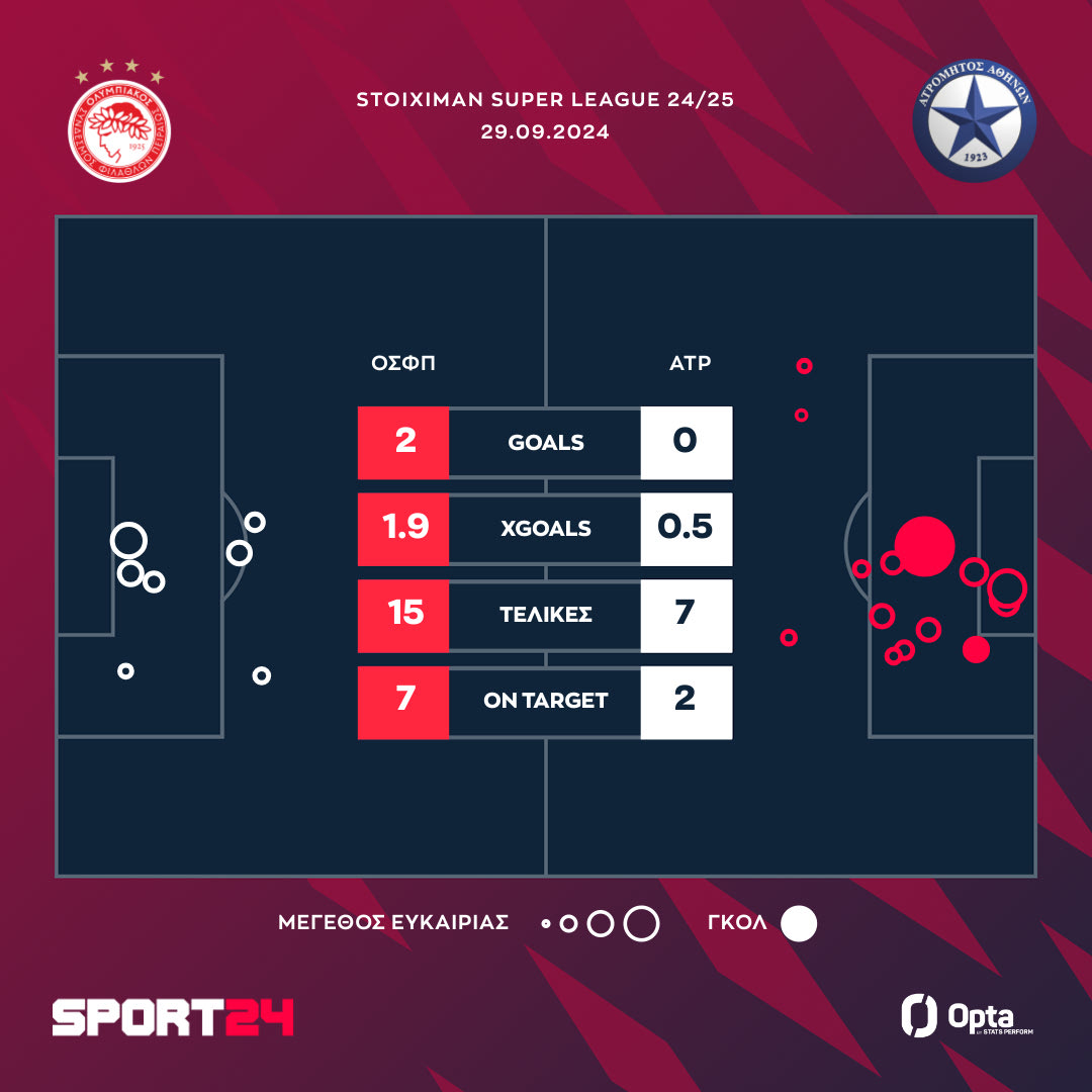 Στην βαθμολογία της Stoiximan Super League, ο Ολυμπιακός έφτασε τους 13 πόντους, ενώ ο Ατρόμητος παρέμεινε στους οκτώ βαθμούς.