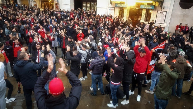 Λίγες ώρες πριν από τη σέντρα του αγώνα με την Τότεναμ για την 5η αγωνιστική του Champions League (22.00, COSMOTE SPORT 2 HD), οι οπαδοί του Ολυμπιακού συγκεντρώθηκαν στο κέντρο του Λονδίνου και με φωνές και συνθήματα έδωσαν “ερυθρόλευκο” χρώμα στη βρετανική πρωτεύουσα.