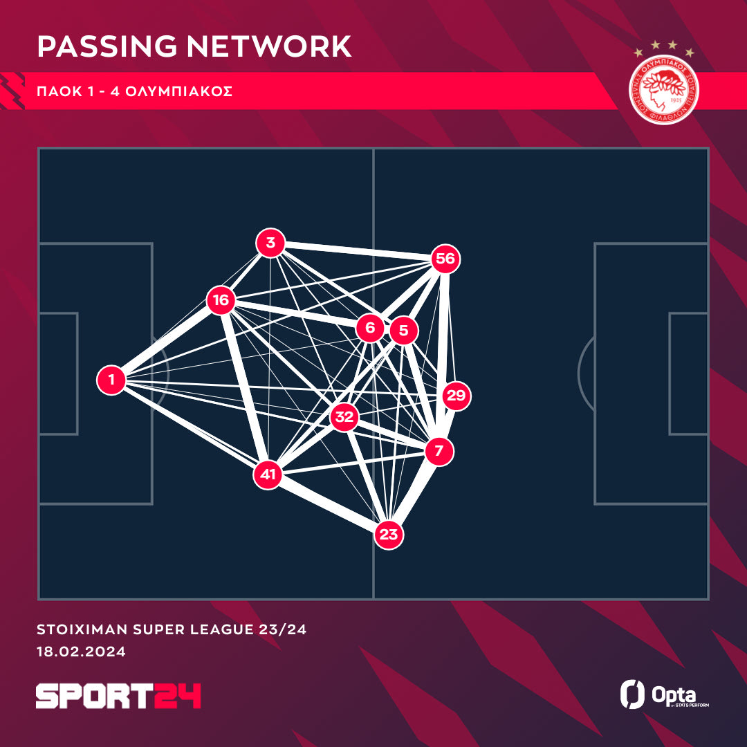 Ο Ολυμπιακός πίεσε πολύ τους μέσους του ΠΑΟΚ και ειδικά τον Μεϊτέ. Ο Βάσκος προφανώς είδε όσα έκανε ο Γάλλος απέναντι στην ΑΕΚ και κατάλαβε πως πρέπει να τον περιορίσει.