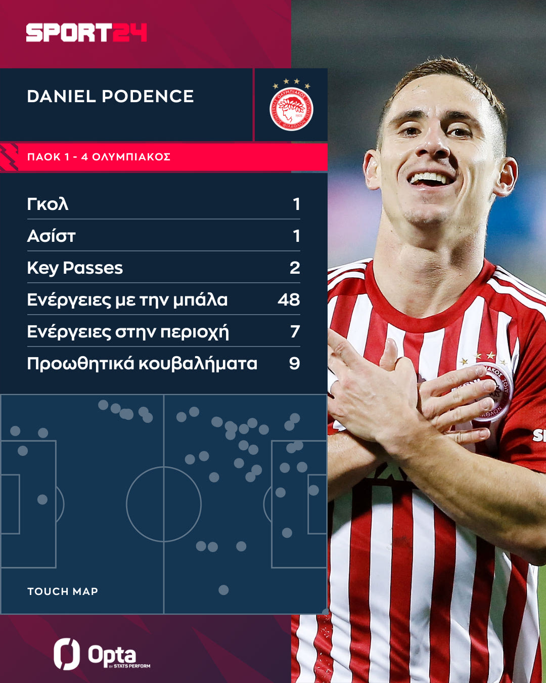 Ο Ποντένσε τελείωσε το παιχνίδι με επτά ενέργειες στην αντίπαλη περιοχή. Φοβερή επίδοση, αν υπολογίσει κανείς ότι περισσότερες είχε μόνο απέναντι στον Ατρόμητο (12) και πως κανένας παίκτης του Ολυμπιακού δεν έχει κάνει σε φετινό ντέρμπι περισσότερες ενέργειες στην περιοχή του αντιπάλου.