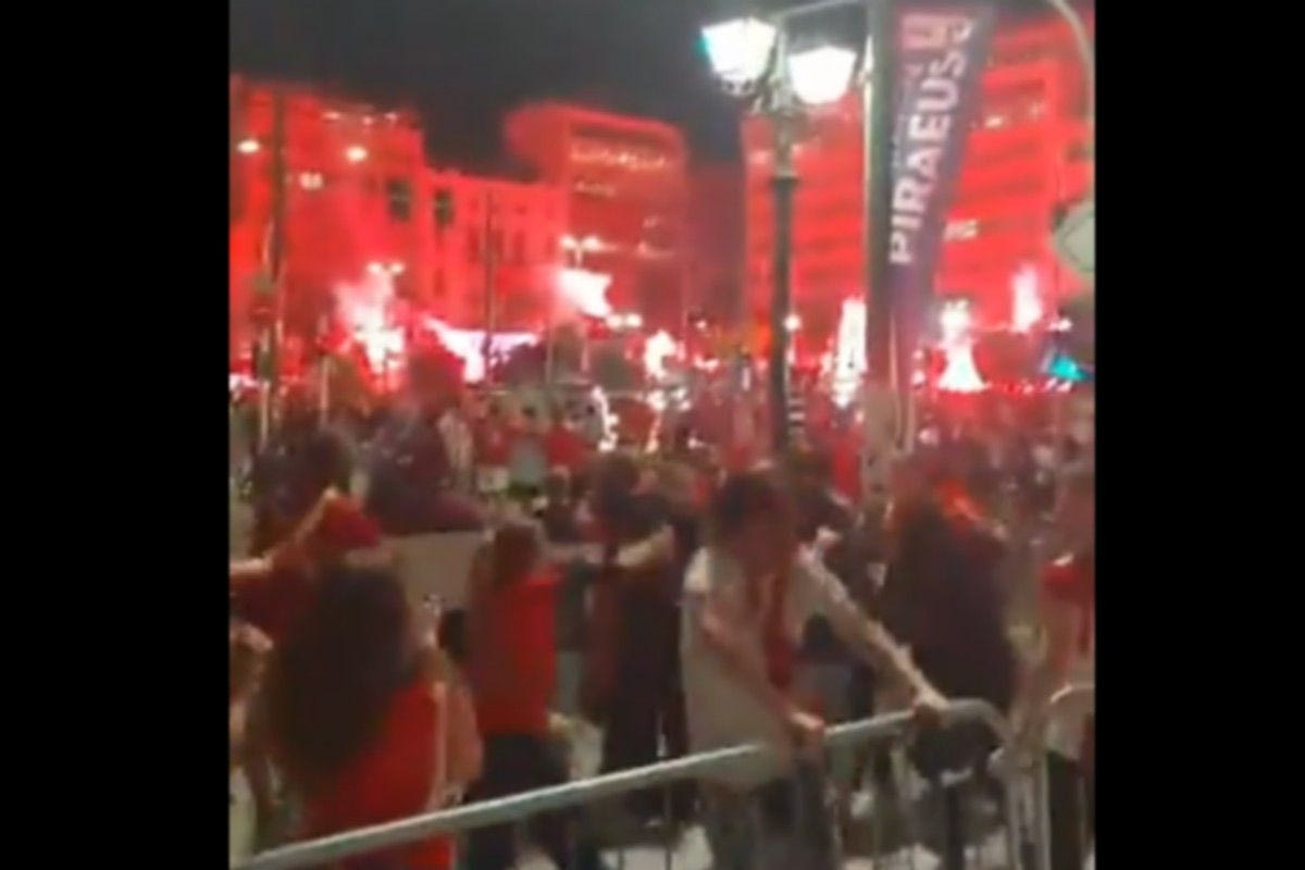 Απίστευτες σκηνές στον Πειραιά, με τον κόσμο του Ολυμπιακό να πανηγυρίζει έξαλλα τη στιγμή που ο Ελ Κααμπί έστειλε τη μπάλα στα δίχτυα του Τερατσάνο και έκανε το 1-0 για τους ερυθρόλευκους στο 116ο λεπτό κόντρα στην Φιορεντίνα.