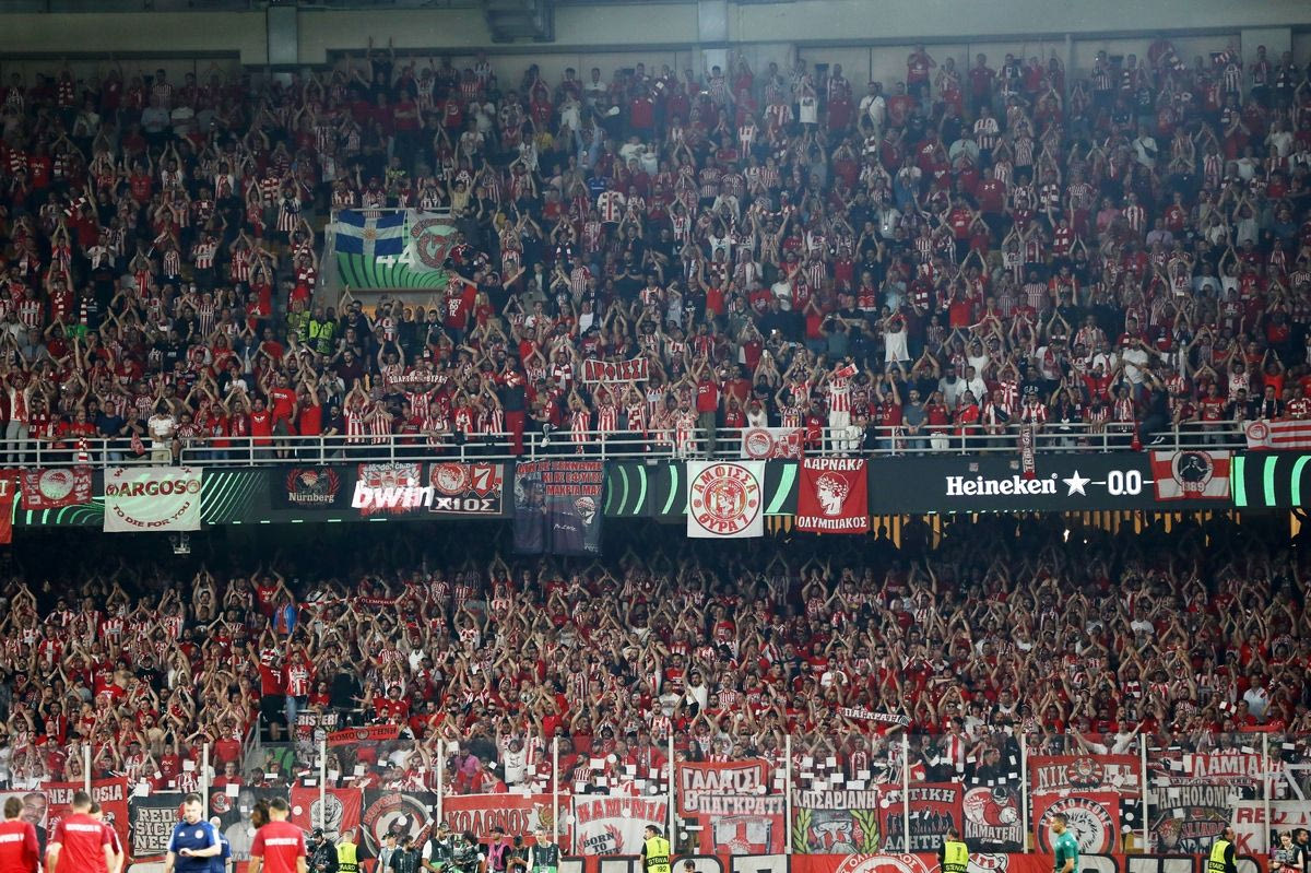 Ο ύμνος του Ολυμπιακού ήχησε στην OPAP Arena, με τους χιλιάδες φίλους των ερυθρολεύκων να στέκονται όρθιοι και να αναμένουν τη σέντρα στον τελικό του Conference League με αντίπαλο τη Φιορεντίνα.
