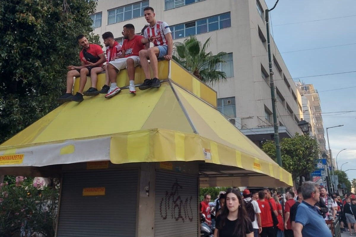 Ολυμπιακός – Φιορεντίνα: Η τρέλα για τον τελικό οδήγησε οπαδούς των Πειραιωτών να ανέβουν σε περίπτερο