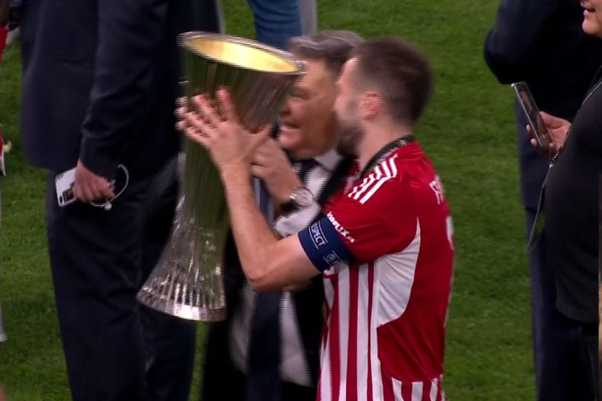 Ο Αλέξης Κούγιας, που πρόσφατα παραιτήθηκε από την αντιπροεδρία και τη θέση του νομικού συμβούλου της ΠΑΕ Ολυμπιακός παρακολούθησε τον τελικό του Conference League στην OPAP Arena και έσπευσε να πανηγυρίσει την ευρωπαϊκή Κούπα με τον Κώστα Φορτούνη.