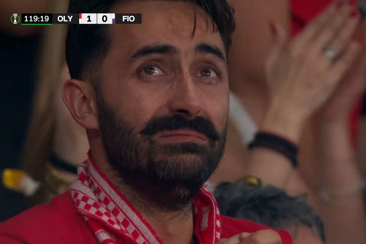 Ολυμπιακός – Φιορεντίνα: Οπαδός των ερυθρολεύκων ξέσπασε σε κλάματα όταν μέτρησε το γκολ