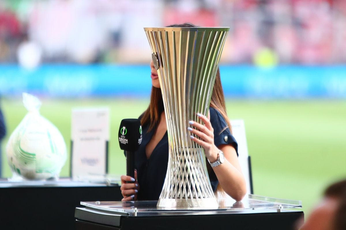 Το τρόπαιο του Conference League πήρε τη θέση του στην OPAP Arena λίγες ώρες πριν από την έναρξη του τελικού (29/5, 22:00, COSMOTE SPORT 1HD, MEGA, LIVE SPORT24).