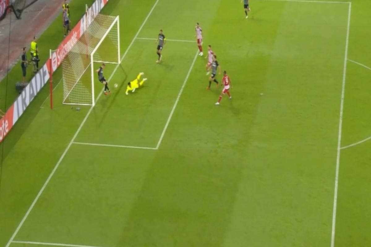 Σε εκείνο το λεπτό ο Γκρίφο έχασε την μπάλα, ο Φορτούνης έκλεψε και τροφοδότησε τον Ελ Κααμπί, με τον Μαροκινό να κάνει το πλασέ από πλεονεκτική θέση αλλά τον Γκίντερ να κόβει σωτήρια πάνω στη γραμμή, με τους Μασούρα και Μπιελ να μην μπορούν στη συνέχεια να προωθήσουν τη μπάλα στα δίχτυα.