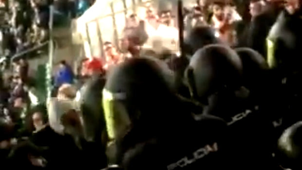 Οι φίλαθλοι του Ολυμπιακού δέχθηκαν άγρια επίθεση από Ισπανούς αστυνομικούς στα μισά του πρώτου ημιχρόνου της αναμέτρηση με την Μπέτις στο "Μπενίτο Βιγιαμαρίν". (VIDEO)