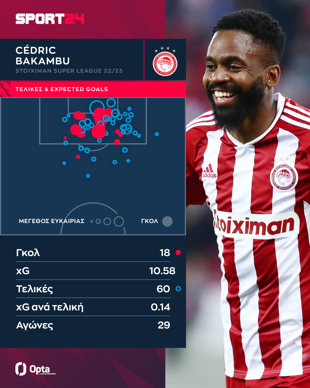 Οι τελικές και τα xGoals του Σεντρίκ Μπακαμπού τη σεζόν 2022/23