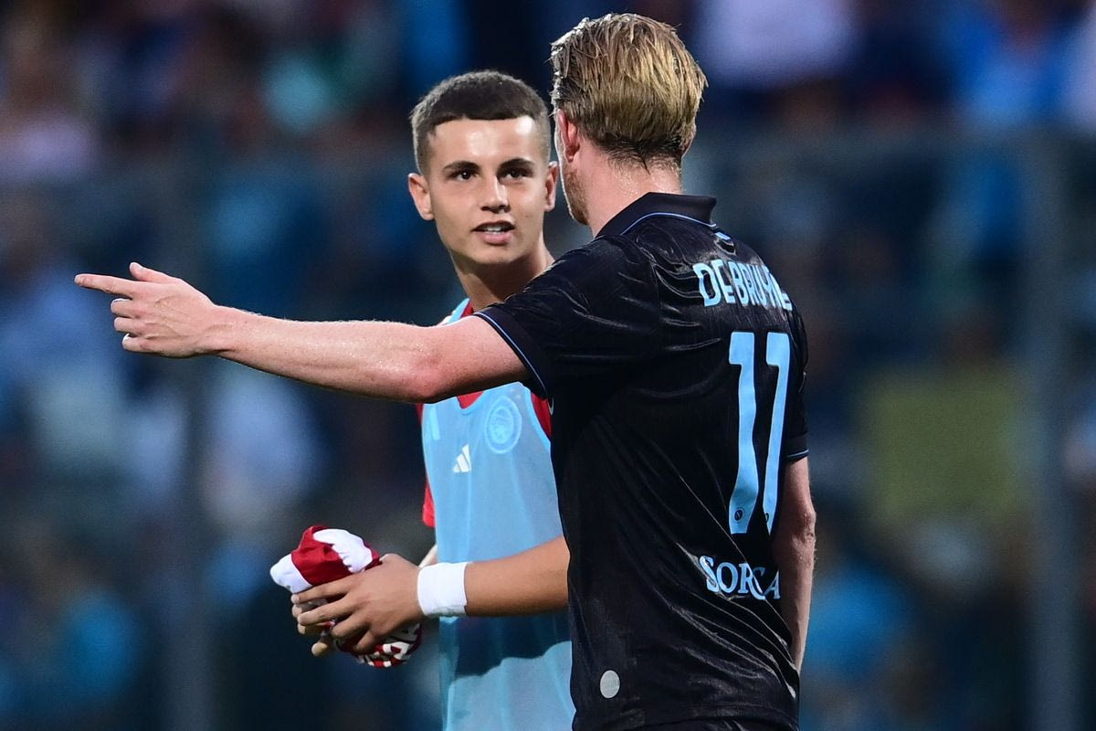 Ο Ολυμπιακός υπέστη την πρώτη του ήττα στα φετινά φιλικά προετοιμασίας, αφού η Νάπολι τον νίκησε στον αγώνα στην Ιταλία με 2-1. Μετά το τέλος του αγώνα, ο Χρήστος Μουζακίτης είχε συνομιλία με τον άσο των παρτενοπέι, Κέβιν Ντε Μπρόινε.