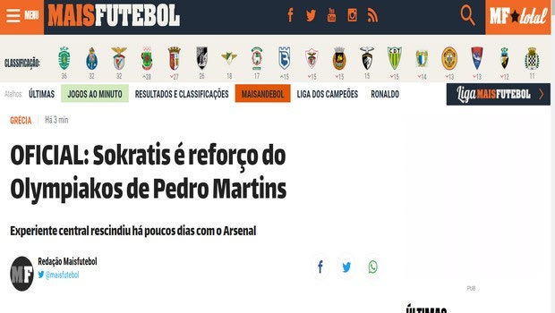 MAIS FUTEBOL: Ο ΣΩΚΡΑΤΗΣ ΜΕΤΑΓΡΑΦΗ ΣΤΟΝ ΟΛΥΜΠΙΑΚΟ ΤΟΥ ΜΑΡΤΙΝΣ