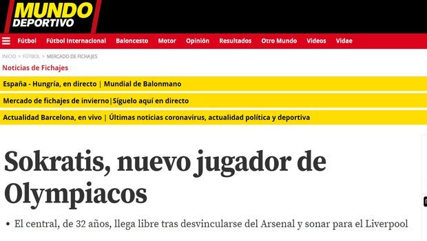 MUNDO DEPORTIVO: Ο ΣΩΚΡΑΤΗΣ ΝΕΟΣ ΠΑΙΚΤΗΣ ΤΟΥ ΟΛΥΜΠΙΑΚΟΥ