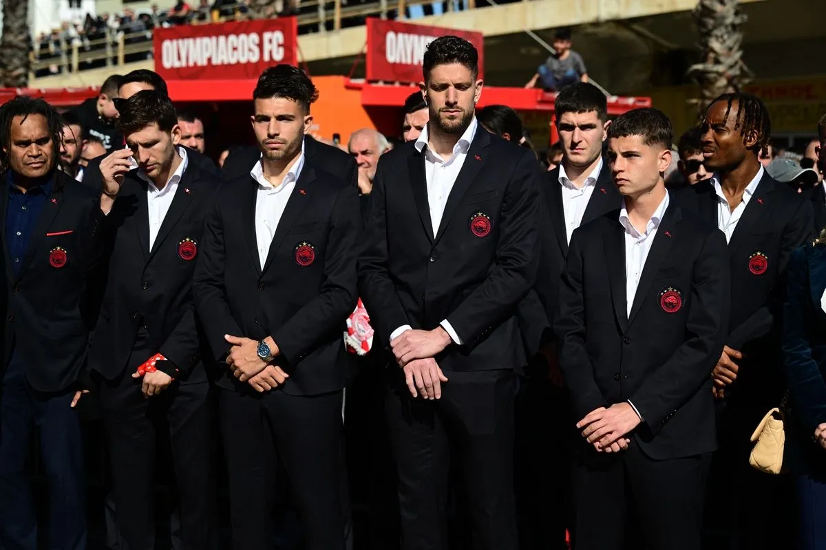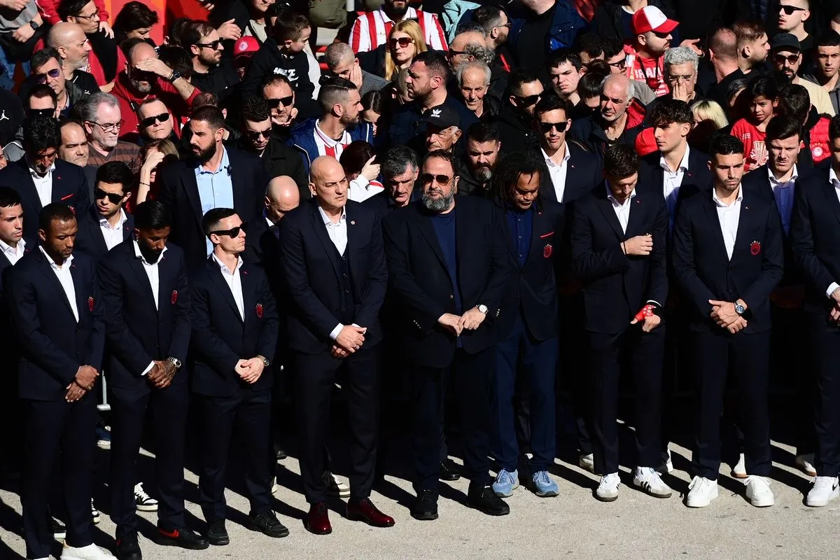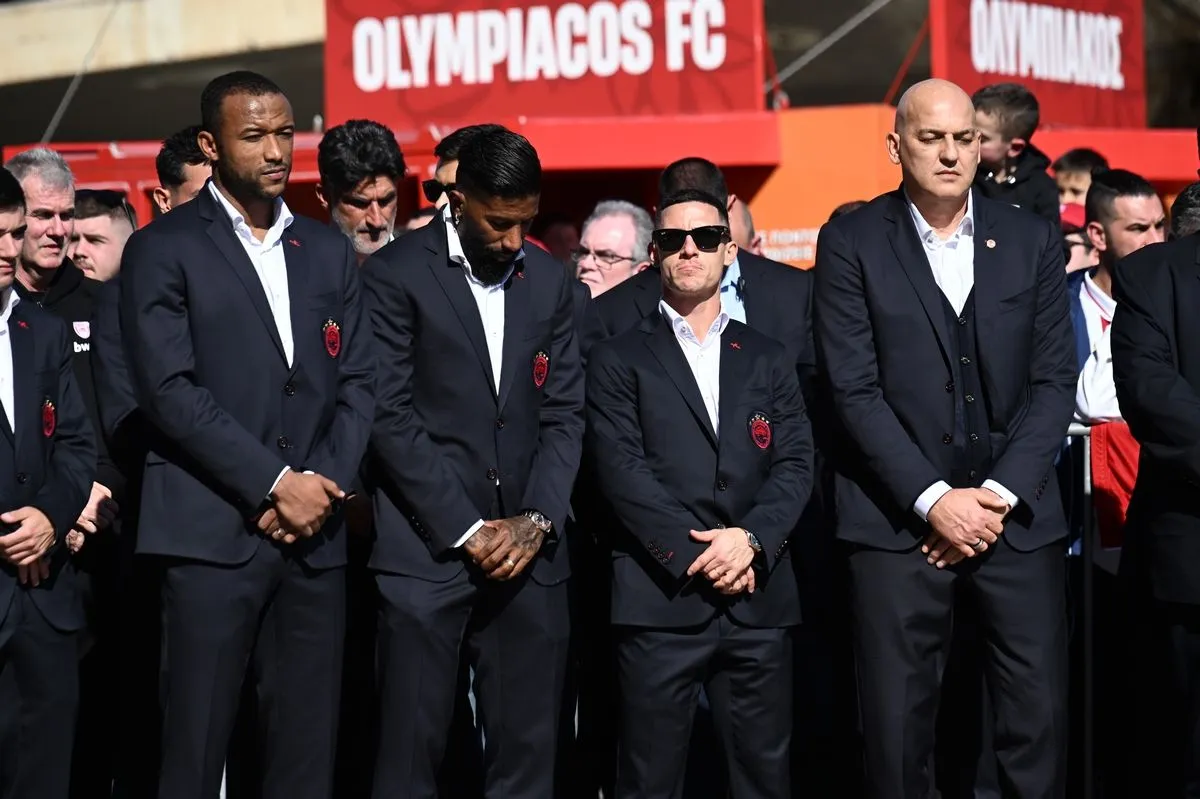 Ολυμπιακός: Η ομάδα ποδοσφαίρου των ερυθρολεύκων στο μνημόσυνο για τα θύματα της Θύρας 7