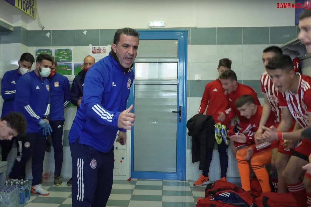 Ο Τάσος Πάντος στην ομιλία στους παίκτες του πριν από το ΠΑΟΚ - Ολυμπιακός Κ15