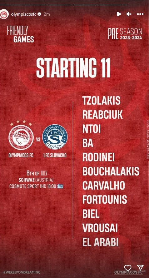 Ολυμπιακός: Η πρώτη ενδεκάδα του Μαρτίνεθ στο φιλικό κόντρα στην Σλοβάτσκο