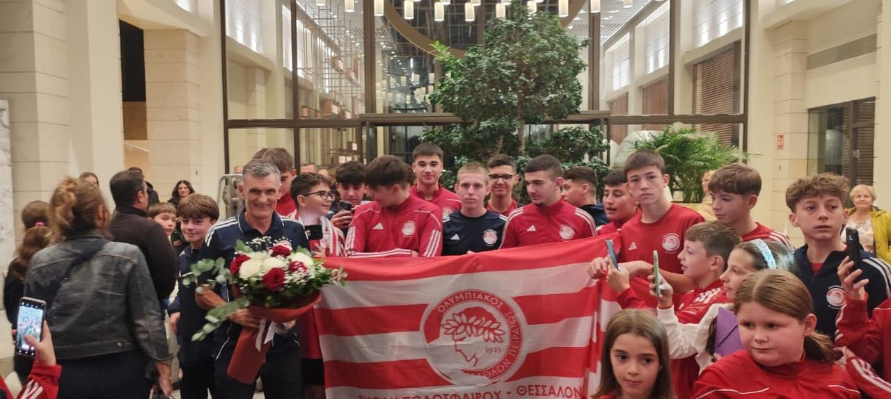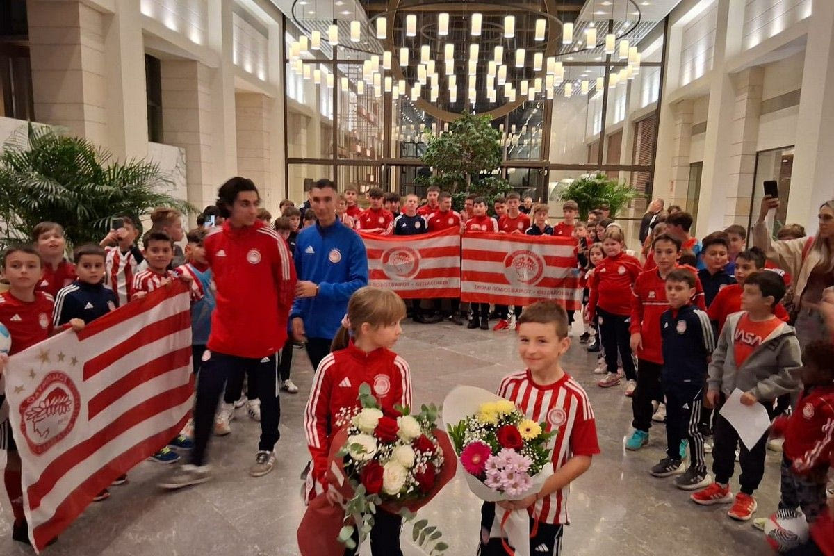 Ολυμπιακός: Η Σχολή των ερυθρόλευκων της Θεσσαλονίκης υποδέχτηκε την ομάδα στο ξενοδοχείο της πόλης ενόψει του αγώνα με τον ΠΑΟΚ