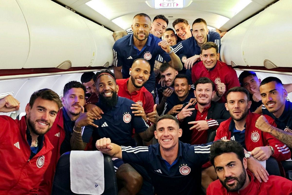 Ολυμπιακός: Η θριαμβευτική φωτογραφία στο αεροπλάνο πριν από την αναχώρηση για Ελλάδα