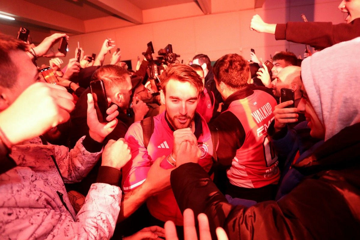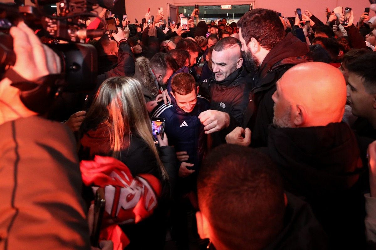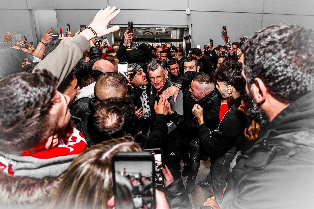 Οι φίλοι του Ολυμπιακού περίμεναν την αποστολή που έφτασε από τη Σερβία για να την αποθεώσουν και να πανηγυρίσουν μαζί της την επική πρόκριση στους "8" του Conference League.