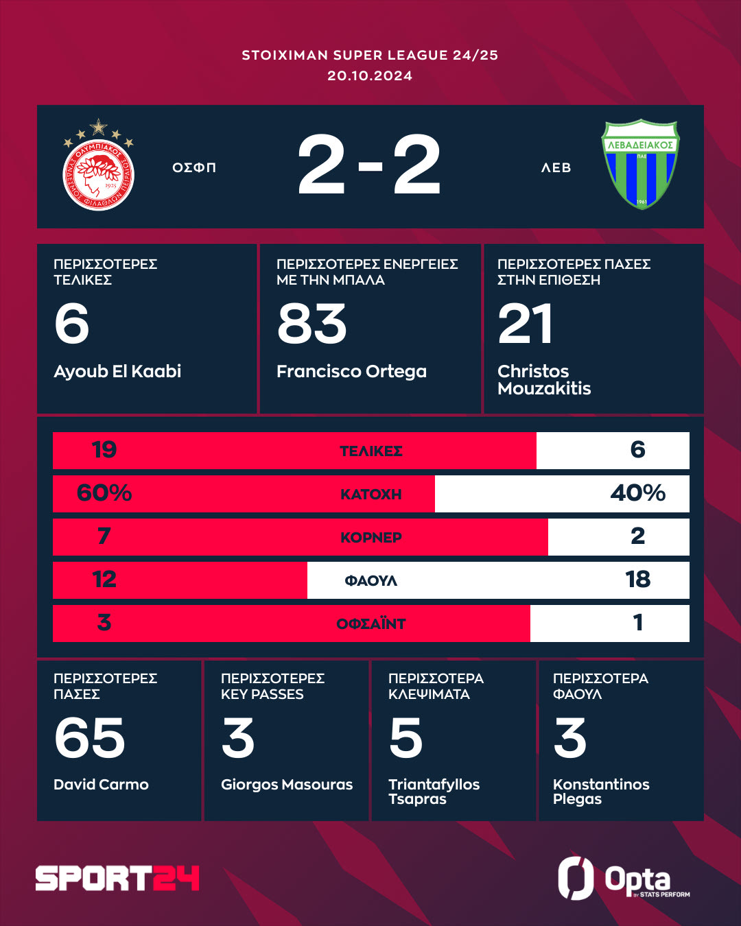 Τα στατιστικά και οι κορυφαίες επιδόσεις στο Ολυμπιακός - Λεβαδειακός