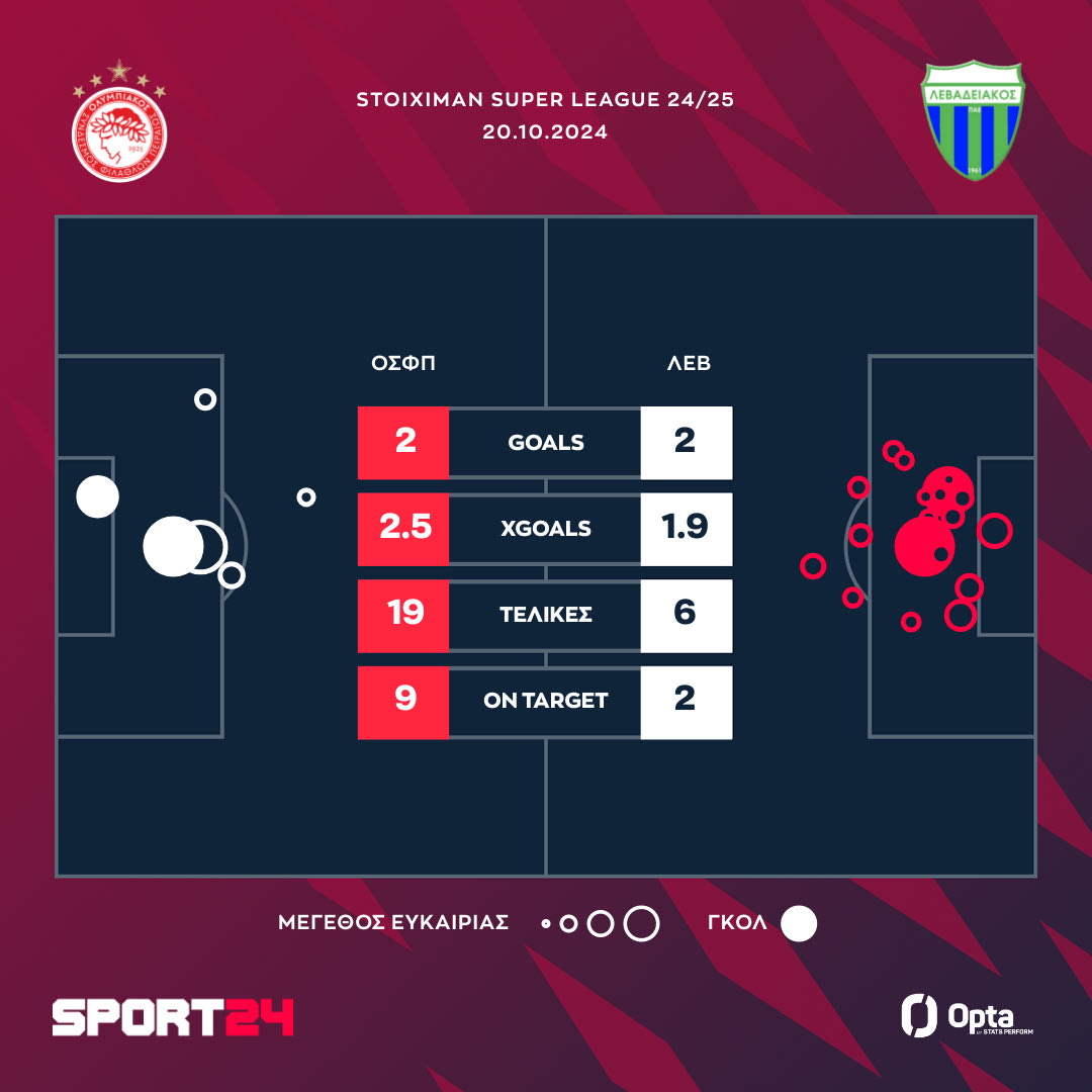Οι τελικές και τα xGoals στο Ολυμπιακός - Λεβαδειακός