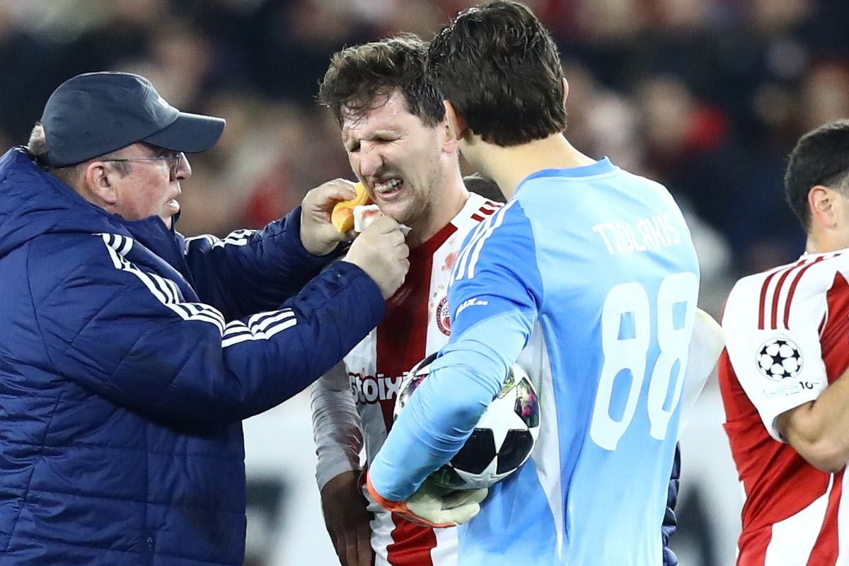 Ολυμπιακός – Λεβερκούζεν: Σφοδρή σύγκρουση Ρέτσου και Πιρόλα, σωριάστηκαν στο έδαφος με αίματα και οι δύο