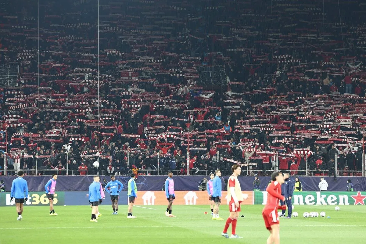 Ο κόσμος των ερυθρόλευκων δημιούργησε μία πολύ δυνατή ατμόσφαιρα πριν τη σέντρα, στέλνοντας ξεκάθαρο μήνυμα στήριξης στην ομάδα για τη μεγάλη μάχη με τους Γερμανούς.