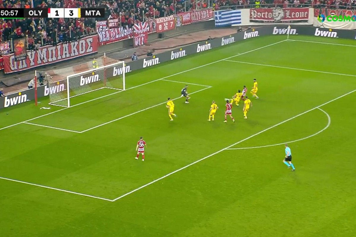 Ο Ολυμπιακός βρέθηκε κοντά στο 2-3 στο 52′ της αναμέτρησης όταν ο Ελ Κααμπί βρέθηκε κοντά στο δεύτερο γκολ του. Ο Όρτα κράτησε πανέμορφα έξω από την περιοχή, τροφοδότησε ιδανικά τον φορ των γηπεδούχων που βρέθηκε απέναντι από τον Μισπάτι, έκανε το σουτ, αλλά ο κίπερ της Μακάμπι έδιωξε με το χέρι.