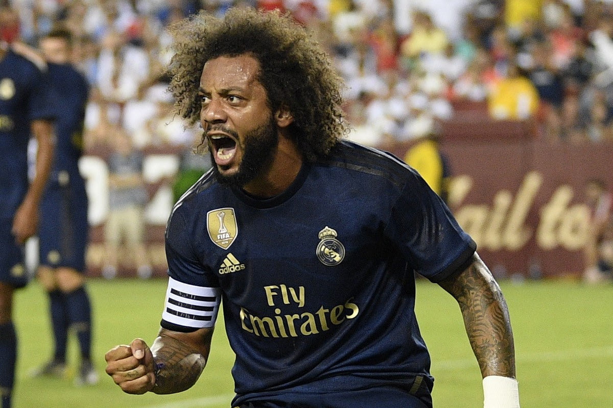 Ο Μαρσέλο πανηγυρίζει με τη φανέλα της Ρεάλ
