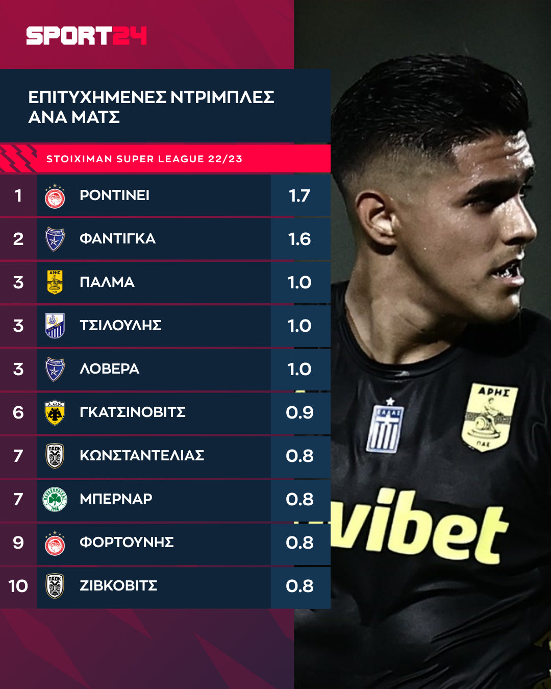 Ένα ακόμη στοιχείο που έκανε τον Πάλμα να ξεχωρίσει με τη φανέλα του Άρη στη Stoiximan Super League ήταν η ευχέρειά του στην ντρίμπλα.