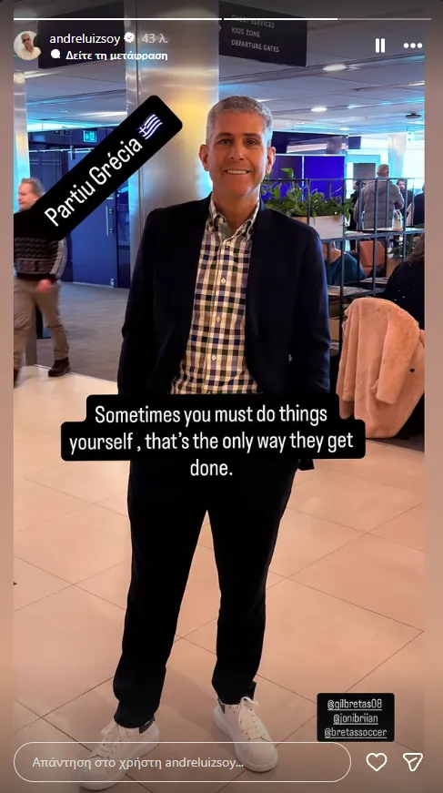 “Φύγαμε για την Ελλάδα. Μερικές φορές πρέπει να κάνεις τα πράγματα μόνος σου, αυτός είναι ο μόνος τρόπος να γίνουν”, έγραψε στη λεζάντα ο Αντρέ Σόι.