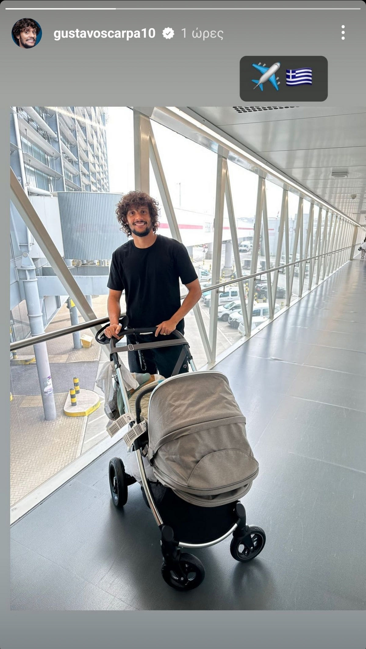 Μάλιστα, ο ίδιος ανέβασε ένα story στο Instagram, όπου φαίνεται μαζί με το παιδί του λίγο πριν μπει στο αεροπλάνο με προορισμό την Αθήνα.