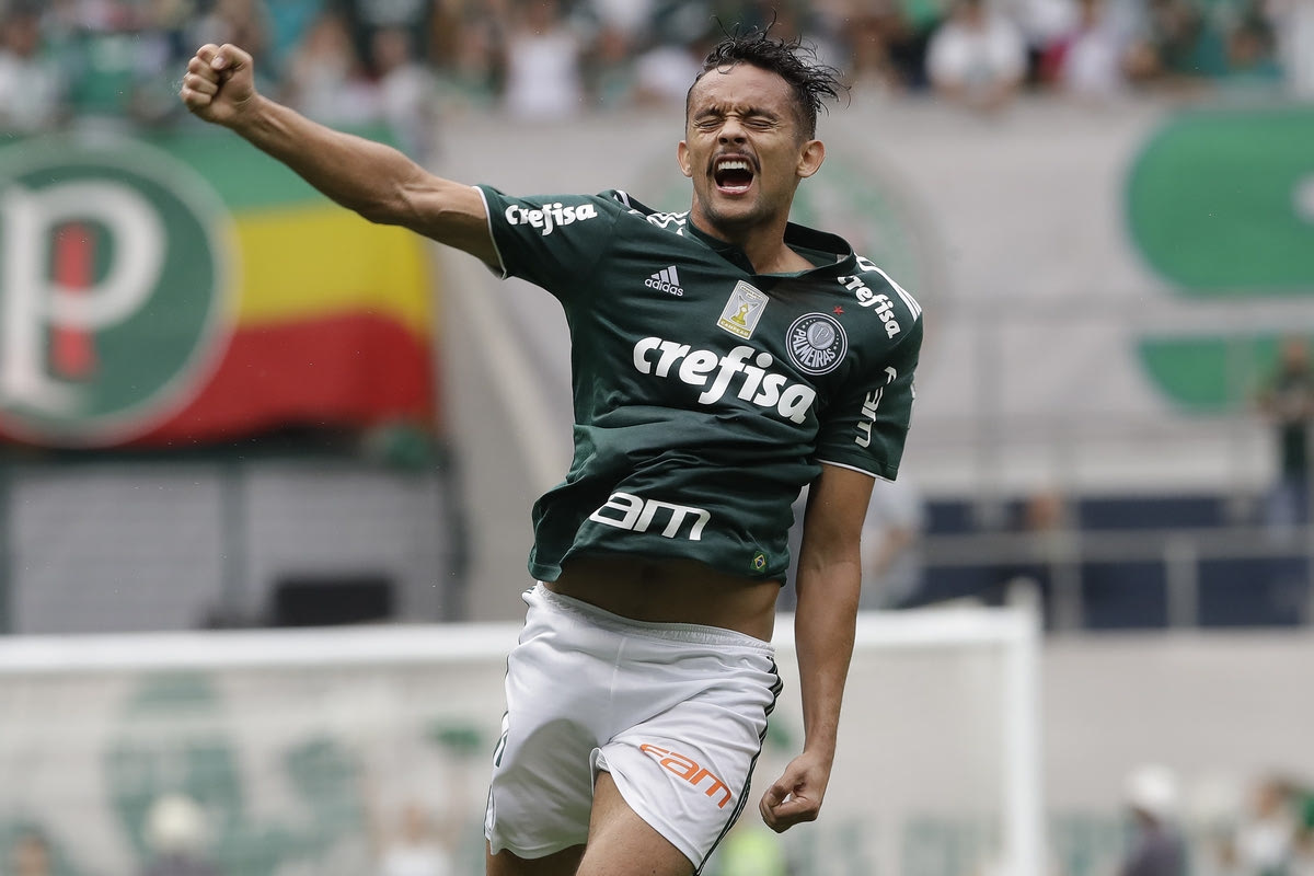 Ο Σκάρπα πανηγυρίζει με τη φανέλα της Παλμέιρας © 2018 Andre Penner/AP Images