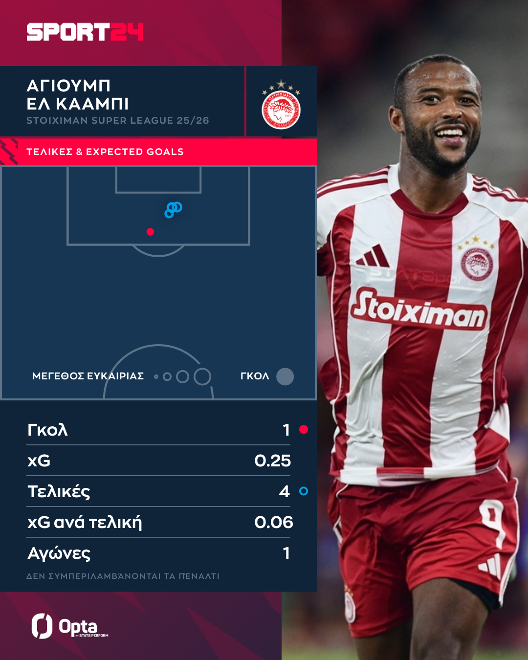 Ολυμπιακός: Μια τελική στον στόχο ήταν αρκετή για τον Ελ Κααμπί, που ξεκίνησε τη σεζόν από εκεί που είχε σταματήσει