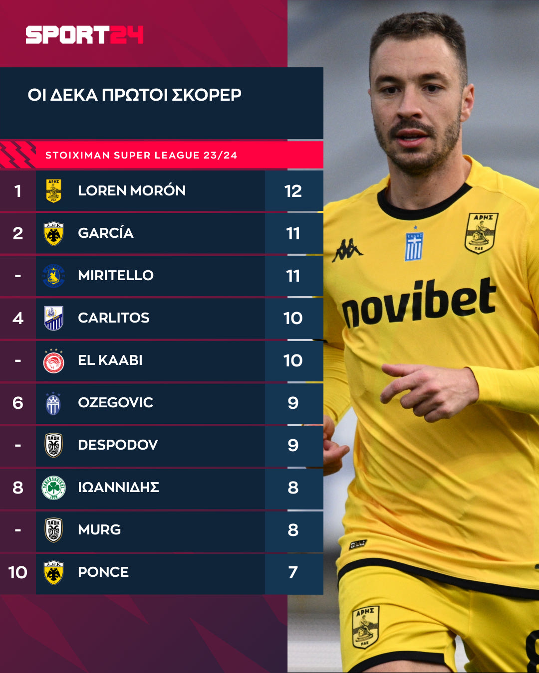 Ο Μαροκινος στράικερ έχει πετύχει δέκα γκολ, όσα και ο Καρλίτος και βρίσκεται πίσω από τους Μιριτέλο και Γκαρσία που έχουν σκοράρει 11 φορές και από τον Λορέν Μορόν, ο οποίος με 12 τέρματα είναι στην κορυφή.