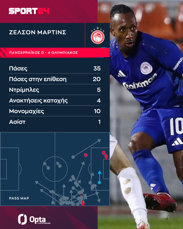 Δεν ήταν μόνο το επιθετικό κομμάτι στο οποίο έλαμψε ο 29χρονος. Η εμφάνιση του Ζέλσον Μαρτίνς απέναντι στον Πανσερραϊκό ήταν επιβλητική σε κάθε τομέα του παιχνιδιού των “ερυθρόλευκων”.