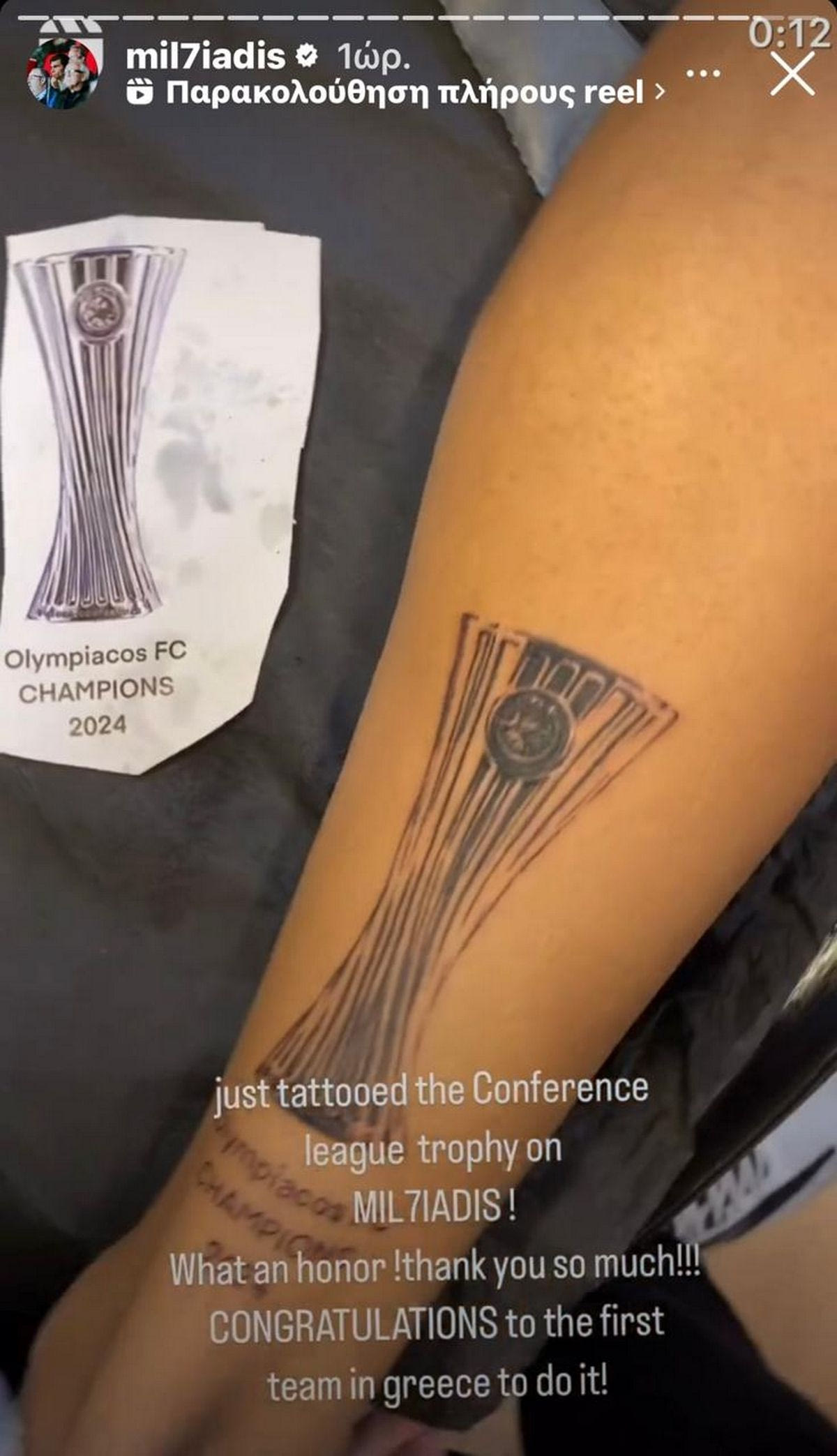 Ο Μιλτιάδης Μαρινάκης ανέβασε story του στο Instagram με το νέο του τατουάζ, το τρόπαιο του Conference League.